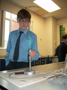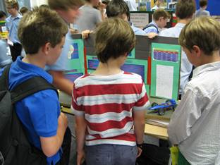 Boys in year 7 undertook a scientific investigation in pairs with their work being presented in the form of a scientific poster which was presented to guests including the incoming year 7 boys on induction day. This was an opportunity for the boys to show their best work and explain both the skills and knowledge that they had developed during their study of science in year 7. A whole range of questions were studied including ‘What is the mathematical relationship between the area of a cardboard sail and the speed of a car travelling down a ramp?’, ‘How does the temperature of a squash ball affect the height that it bounces?’, ‘How does the temperature of an elastic band affect how far it travels?’ ‘The record in the US for skipping is 367 skips per minute. How does the rope length affect the speed of skipping?’, ‘How does the size of a meteorite hitting the moon affect the size of the crater?’, ‘Does drinking coke affect your reaction speeds?’ and many more….